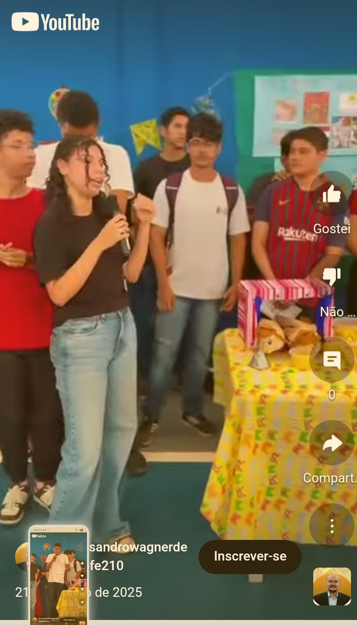 Exposição do audiovisual elaborado pelo estudante Kauã, contendo slides sobre a história, geografia e cultura do nosso estado. Em seguida, o mesmo realizou a apresentação do teatro de fantoche que fez em parceria com o estudante Rogério do 2* ano B.